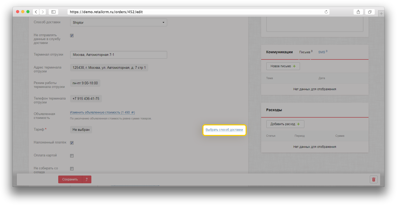 Важно: после сохранения типа доставки, поле "Интегрировать с" перестает быть доступным для редактирования и поменять его нельзя. Если данная доставка Вами больше не используется, Вы можете ее деактивировать, сняв галочку в поле "Активность".