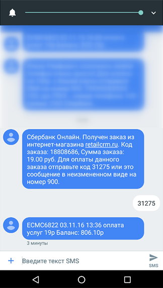 Важно: данный способ оплаты доступен только клиентам «Сбербанк» с подключенной услугой «Мобильный банк». Если к указанному в заказе номеру телефона не привязана услуга «Мобильный банк», то при выставлении счета будет выдана ошибка. С магазина денежные средства за данное SMS сниматься не будут, так как SMS отправляется непосредственно от «Сбербанк».